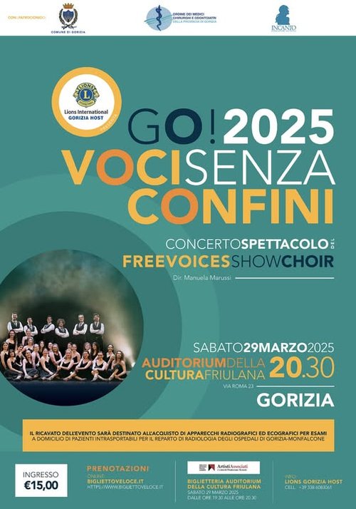 Sono aperte le prevendite per il concerto “GO!2025 Voci senza confini” del Freevoices show Choir diretto da Manuela Marussi, in programma all’Auditorium della Cultura friulana di via Roma 23 sabato 29 marzo alle 20.30.